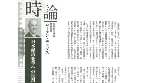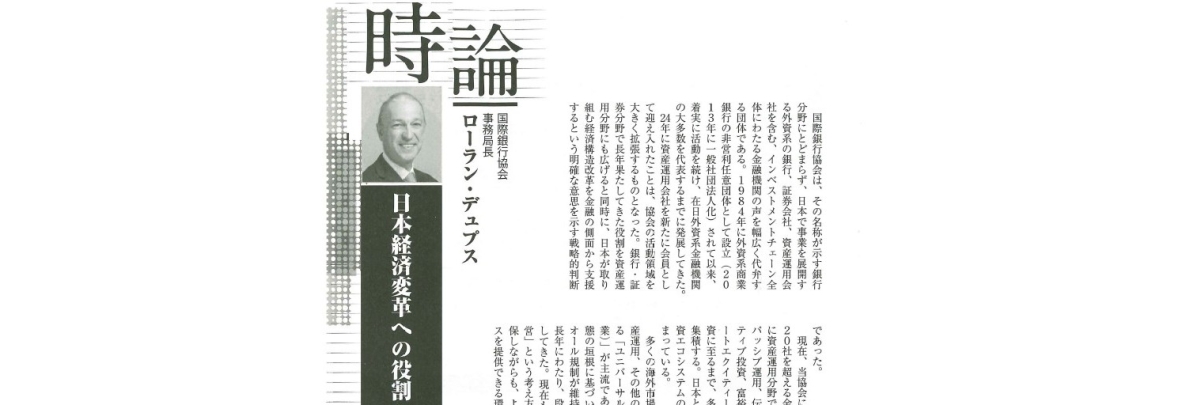IBA Japan was featured again in Kinzai in an article titled “The Role of Foreign Financial Institutions in Japan’s Economic Transformation.” The article highlights IBA Japan’s role as a platform for foreign financial institutions operating in Japan across banking, securities and asset management, and notes the Association’s expansion to welcome asset management firms as members from 2024.